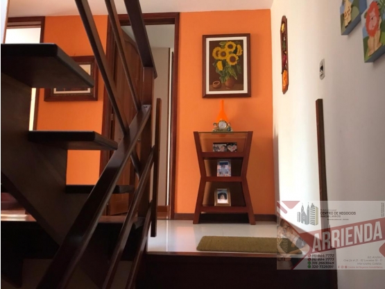casa de tres niveles, sala,comedor,cuatro alcobas con su respetivo closet y la pricipal con vestier, estudio, hall de alcobas, cuatro baños, cocina integral, zona de ropas, patio , piso en madera  y ceramica, balcon , antejardin , garaje , red y calentadpr a gas.